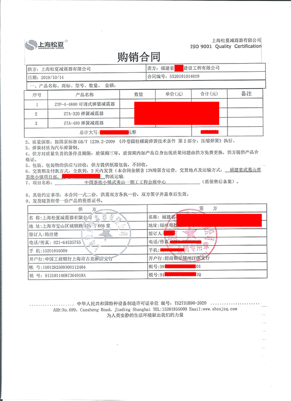 【中國(guó)茶旅小鎮(zhèn)(武夷山)會(huì)展中心】配套彈簧減震器合同