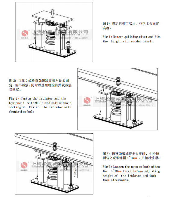 簧減振器 廠家都會(huì)在彈簧減振器產(chǎn)品包裝中放置說明書,和其他工業(yè)產(chǎn)品一樣,產(chǎn)品說明書內(nèi)都會(huì)配有產(chǎn)品的安裝圖。以下就以彈簧減振器知名廠家——上海松夏減振器為例,為你展示ZTF彈簧減振器 安裝圖樣,詳情如下圖: